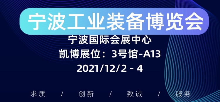 凯博应邀参展2021中国(宁波)工业装备博览会展会地点:宁波国际会展中心展会时间:2021年12月2日-4日凯博展位:3号馆-A13