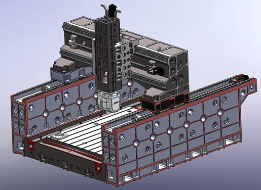 1、    工作台固定,不参与各轴的运动,因此,大大缩小了机床的占地面积,可模组化超大尺寸规格的机型,提高了厂房利用率。